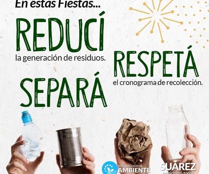 Como forma de cuidar a los “recolectores” de la cooperativa de trabajo “Hagamos Más” quienes recorren los diversos barrios, juntando los residuos reciclables. Se solicita colocar el vidrio en cajas de cartón o bolsas separadas del resto del material. Durante los festejos de Navidad y Año Nuevo se suele juntar mayor cantidad de residuos de vidrio, por tal motivo, los