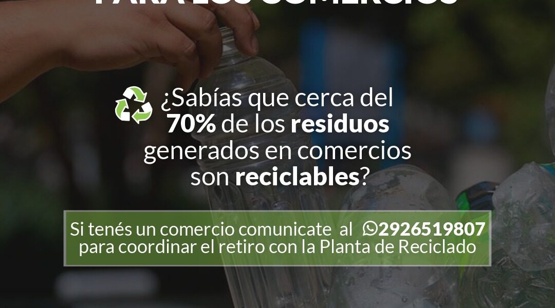 Se invita a los titulares de los negocios que se comuniquen al WhatsApp 02926 15519807 de la Planta de Reciclado para coordinar el retiro. Personal del área está recorriendo los comercios con el fin de otorgar la información sobre la logística que se realizará con los comercios locales, ampliando la cobertura a toda la ciudad cabecera. Cabe destacar que cerca