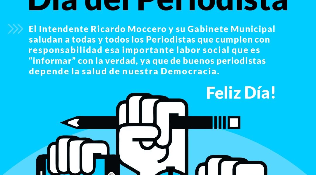 El Intendente Ricardo Moccero y su Gabinete Municipal saludan a todas y todos los periodistas que cumplen con responsabilidad esa importante labor social que es “informar” con la verdad, ya que de buenos periodistas depende la salud de nuestra Democracia. Feliz Día!
