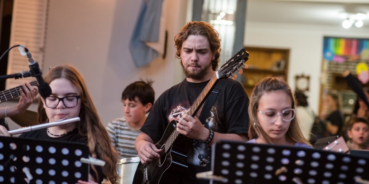El viernes 12 de diciembre, se llevó a cabo una “Ensamblada Acústica” en el Mercado de las Artes, una propuesta musical que reunió a alumnos y alumnas de distintas disciplinas de la EMMCoS. Del encuentro participaron estudiantes de guitarra, charango, ukelele, violín, violonchelo, flauta, percusión y canto, quienes compartieron con el público un espacio de expresión artística y trabajo colectivo,