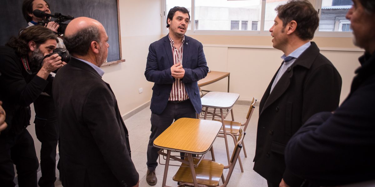 El Gobernador de la Provincia, el director general de Cultura y Educación, Alberto Sileoni y el Intendente Ricardo Moccero, recorrieron las nuevas instalaciones del Instituto Superior de Formación Docente y Técnico (ISFDyT) N°48, donde más temprano se llevó a cabo un Cabildo Abierto de la Educación Superior, un encuentro de participación comunitaria que reunió a más de 450 alumnos y