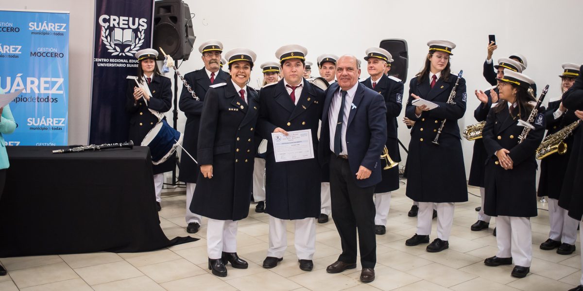 Durante el acto oficial del 6 de Agosto, el Intendente Municipal Ricardo Moccero junto a la directora de la Banda Municipal de Música “Bartolomé Meier”, Natalia Erroitzarena; reconocieron por sus 5 años de trayectoria en la emblemática institucional suarense a Carolina Bidonde y por sus 35 años a Rubén Dario Meier. También destacaron a quienes se formaron dentro de las