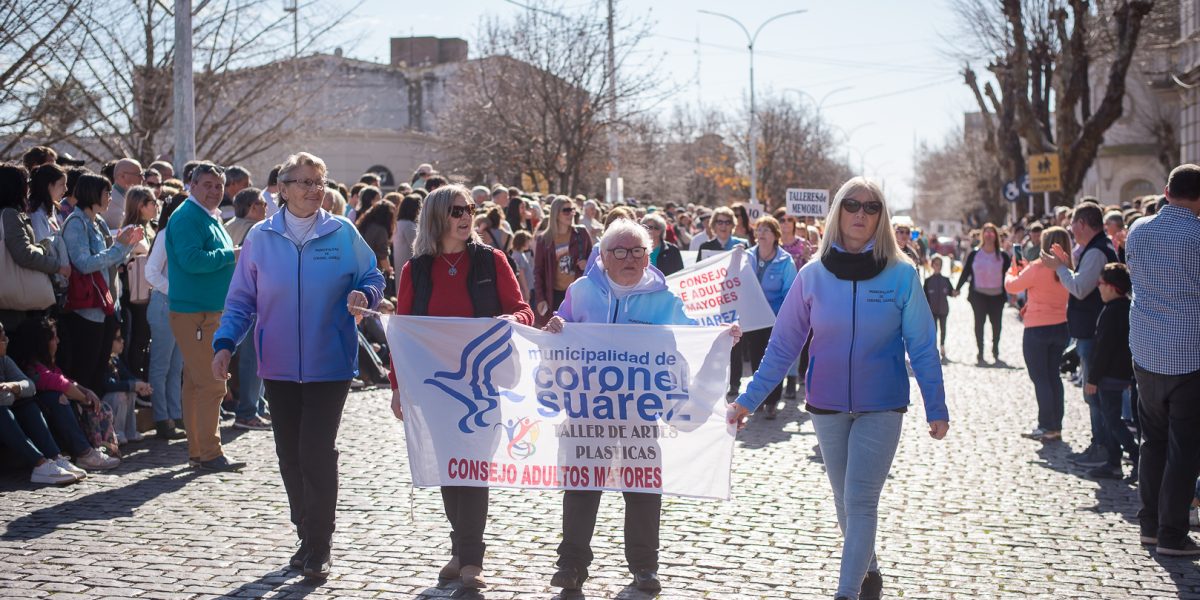 El pueblo de Coronel Suárez participó activamente en las celebraciones por un nuevo aniversario del distrito, manifestando su alegría por la atractiva agenda organizada desde el Municipio y por las ganas de movilizarse para expresar el #Orgullo de ser suarenses. El Intendente Municipal de Coronel Suárez, Ricardo Moccero acompañó el paso de las más de 70 instituciones educativas, clubes y