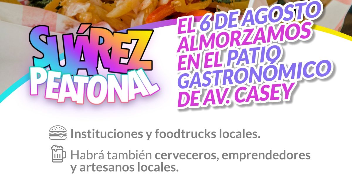 Espectacular Patio Gastronómico presentarán instituciones, clubes y foodtrucks de Coronel Suárez y Pueblos Alemanes para celebrar en comunidad el día de todos los suarenses. En lo que será “la fiesta” de todos los suarenses, el 6 de agosto nos preparamos para disfrutar de #SuarezPeatonal sobre avenida Casey, invitando a los vecinos a disfrutar del almuerzo con las diversas propuestas gastronómicas
