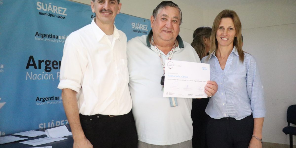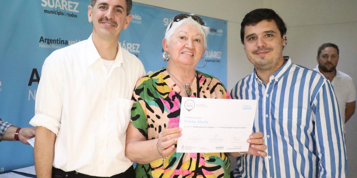 En representación del Intendente Ricardo Moccero, el concejal Mauro Moccero participó junto al Director de Comunicaciones Fernando Streitenberger, el coordinador de Punto Digital Coronel Suárez Franco Schwindt y el tallerista Darío Ferreri; de la entrega de certificados a los adultos que llevaron a cabo durante este 2023 los cursos “Uso de Celular” y “Alfabetización Digital” en Punto Digital. Cabe destacar