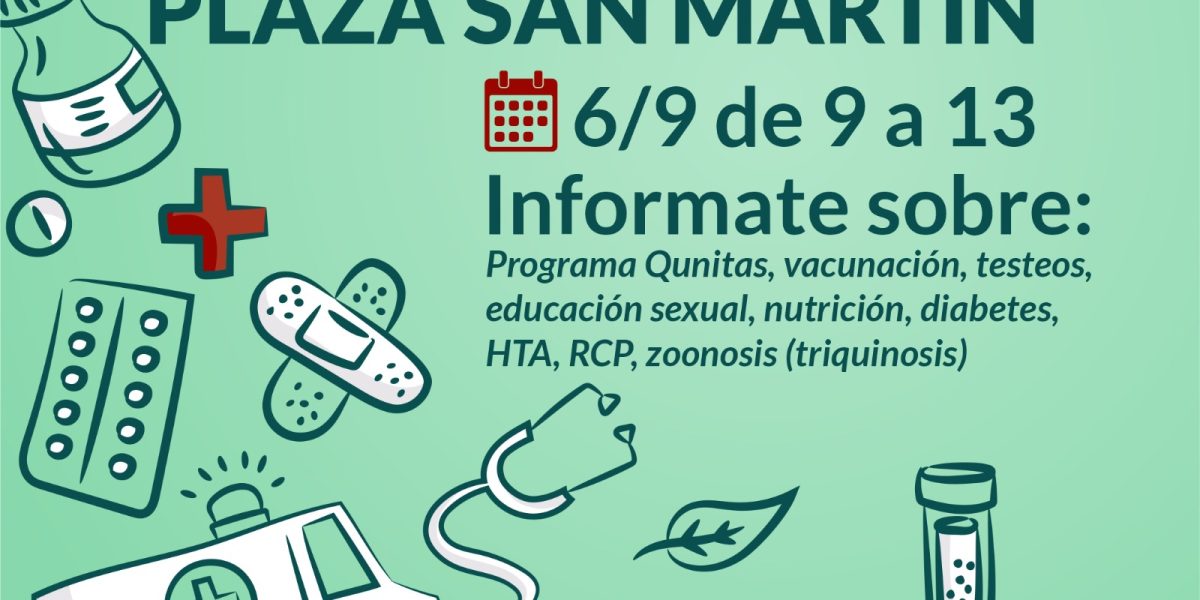 Será el 6 de septiembre de 9 a 13. Los profesionales brindarán información sobre el programa Qunitas y otros temas de interés para la población como: vacunacion, testeo sífilis, vih y hepatitis c, educación sexual, nutrición, diabetes, HTA, RCP, zoonosis (triquinosis). La jornada es abierta a la comunidad, con invitación especial para las escuelas. En el marco de los 45
