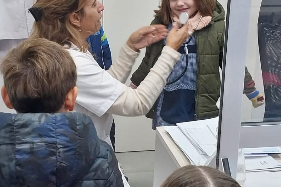 Los niños y niñas de Sala Naranja, acompañados por sus docentes recorrieron los consultorios, conocieron qué tarea se desarrolla en cada espacio, fueron pesados y medidos, escucharon su corazón, observaron las heladeras de vacunas y cómo se otorgan turnos a las personas que concurren al lugar. Estos conocimientos serán trasladados a la sala del jardín para jugar entre todos.