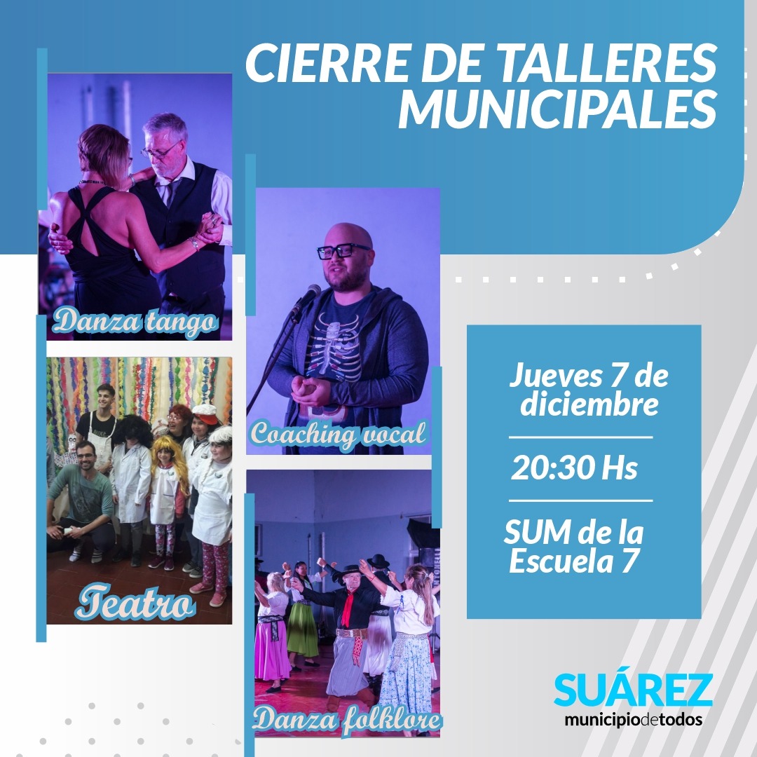 Este jueves 7 de diciembre, a las 20:30, en el SUM de la Escuela Primaria N° 7 –Uriburu y Lamadrid- . Se presentarán el taller de Tango, Folclore, Coaching Vocal y Teatro.