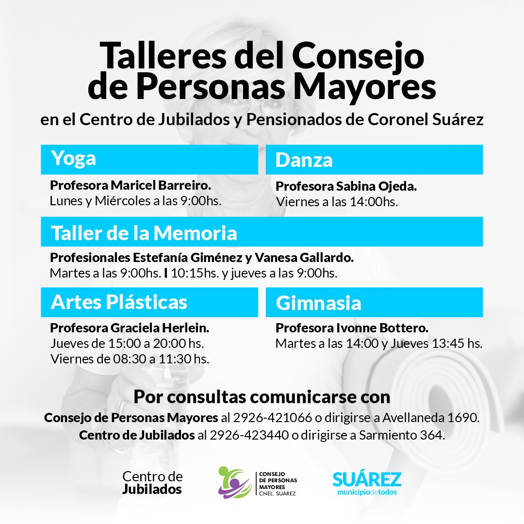 Cabe destacar que el Taller de la Memoria comenzará el martes 11 de abril a cargo de las profesionales Estefanía Giménez y Vanesa Gallardo y se dictará los martes a las 9:00 y a las 10:15 y los jueves a las 9:00.