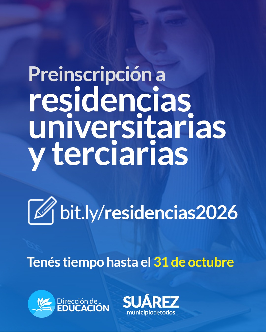 La Dirección de Educación, informa que, hasta el 31 de octubre, se encuentra abierta la pre-inscripción a las Residencias Municipales en las ciudades de Buenos Aires, La Plata, Bahía Blanca y Coronel Suárez.
