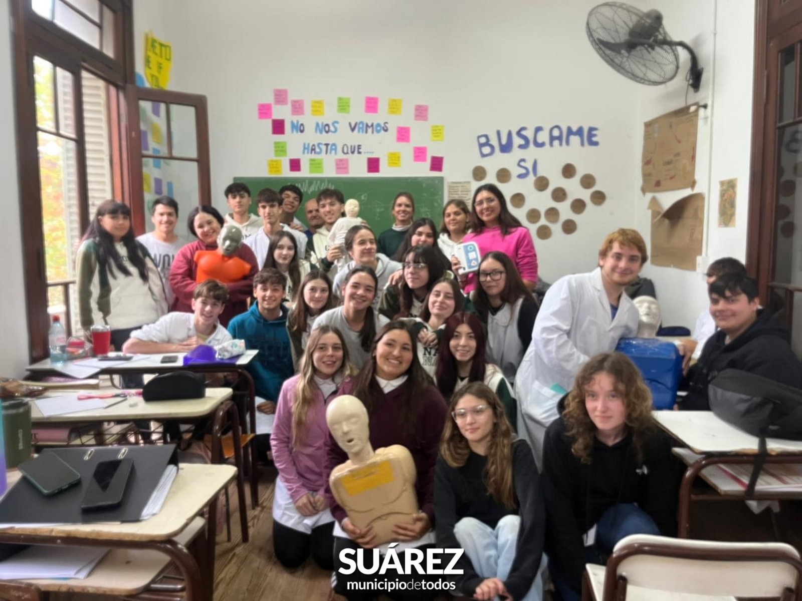 El primer encuentro fue en la Secundaria N° 1 y estuvo a cargo del Instructor Pablo Fernández, el Enfermero Mauricio Zarandón y la técnica en RCP Malena Nigoul.