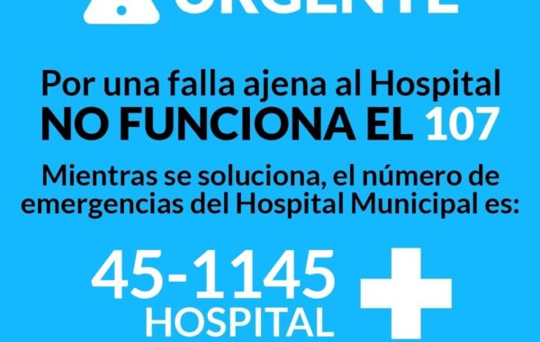 Informamos que, por causas ajenas al Hospital Municipal “Dr. Raúl Caccavo”, el número de emergencias 107 se ...