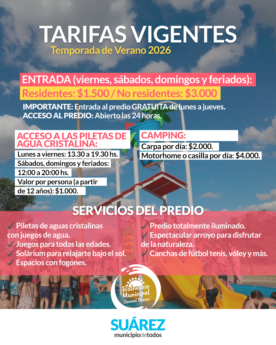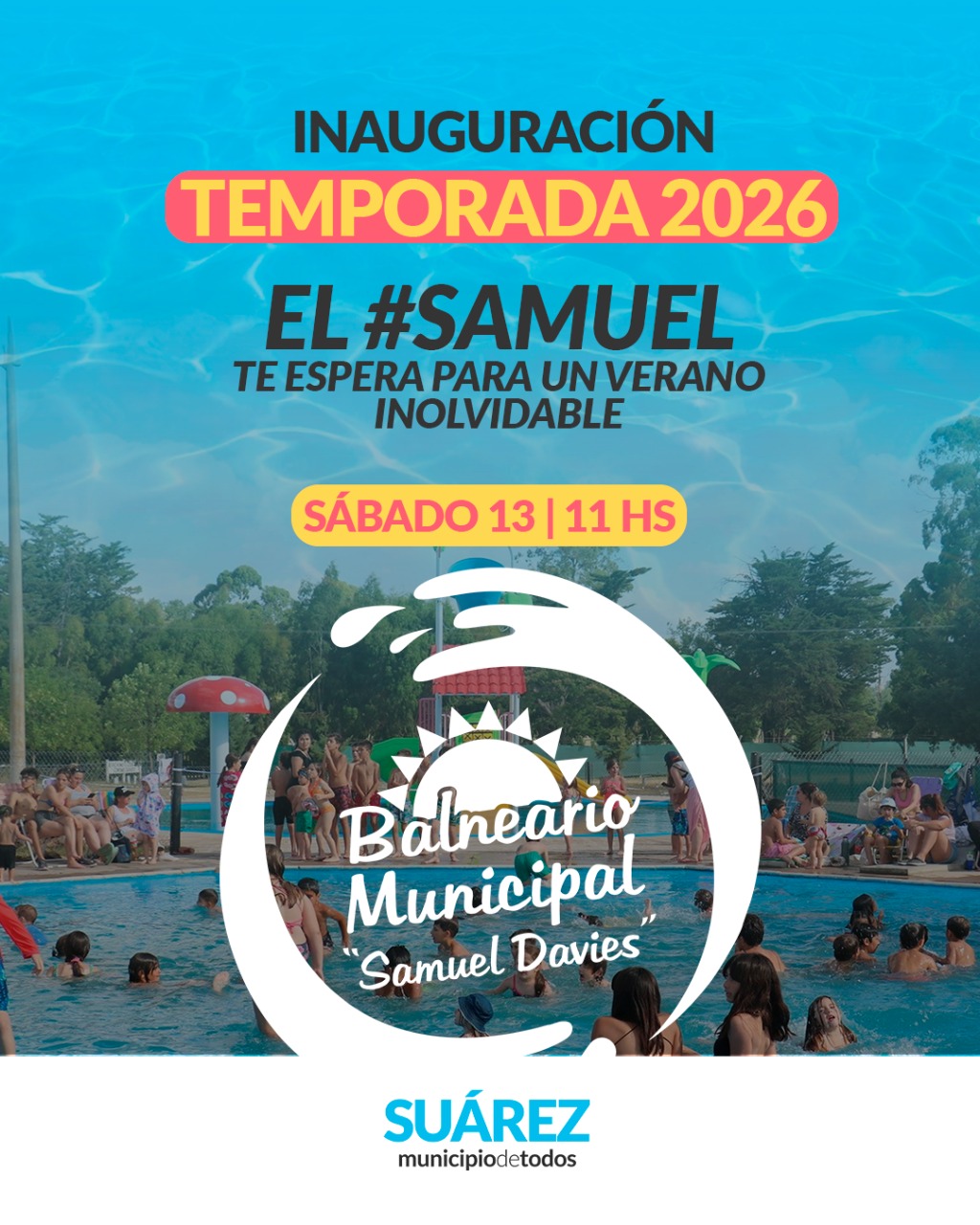 Este sábado 13 de diciembre le damos la bienvenida al verano 2026 con la inauguración oficial de la temporada en el Balneario Municipal Samuel Davies