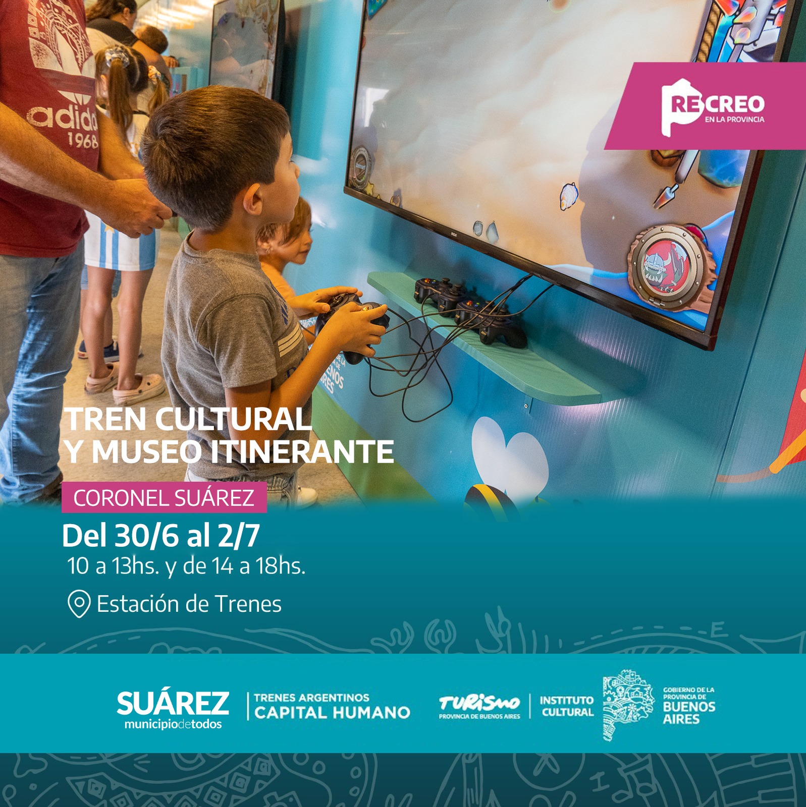 Tras gestiones realizadas por el Intendente Ricardo Moccero, el 30 de junio, el sábado 1 y el domingo 2 de julio, el Tren Cultural y Museo Itinerante llegará a Coronel Suárez con una propuesta para toda la familia con actividades artísticas, lúdicas y culturales, con entrada LIBRE Y GRATUITA.