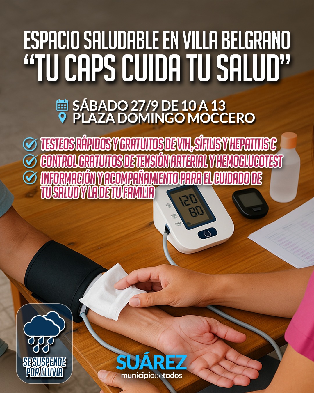 El próximo sábado 27 de septiembre, de 10 a 13 horas, acércate a la Plaza Domingo Nicolás Moccero de Villa Belgrano y participá de una jornada de promoción de la salud y prevención de enfermedades.