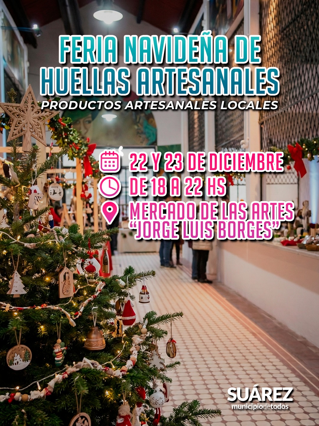 Los días 22 y 23 de diciembre, de 18:00 a 22:00, el Mercado de las Artes Jorge Luis Borges se convertirá en un espacio ideal para encontrar productos artesanales locales, realizados con dedicación y talento por emprendedores de nuestra comunidad.