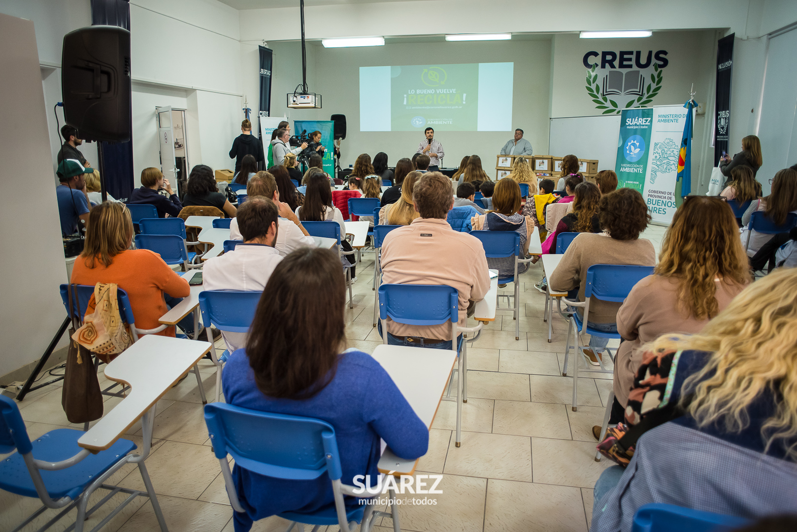 Participaron de la entrega el Intendente de Coronel Suárez Ricardo Moccero; Giuliana Pecora Directora de Gobernanza Ambiental y Participación Pública de la provincia, Carolina Digiani, Jefa de Gabinete de la Subsecretaría de Política Ambiental, el Jefe de Gabinete Mauro Moccero, Magdalena Graff, Subdirectora de Ambiente, la Jefa Distrital de Educación Andrea Acosta y el director de Educación, Maximiliano Margiotta.