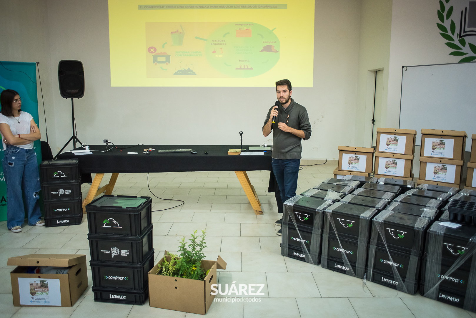 Antes de culminar la presentación, se realizó un Taller de Compostaje a cargo de Juan Ignacio Conlon de la subdirección de Ambiente del Municipio.