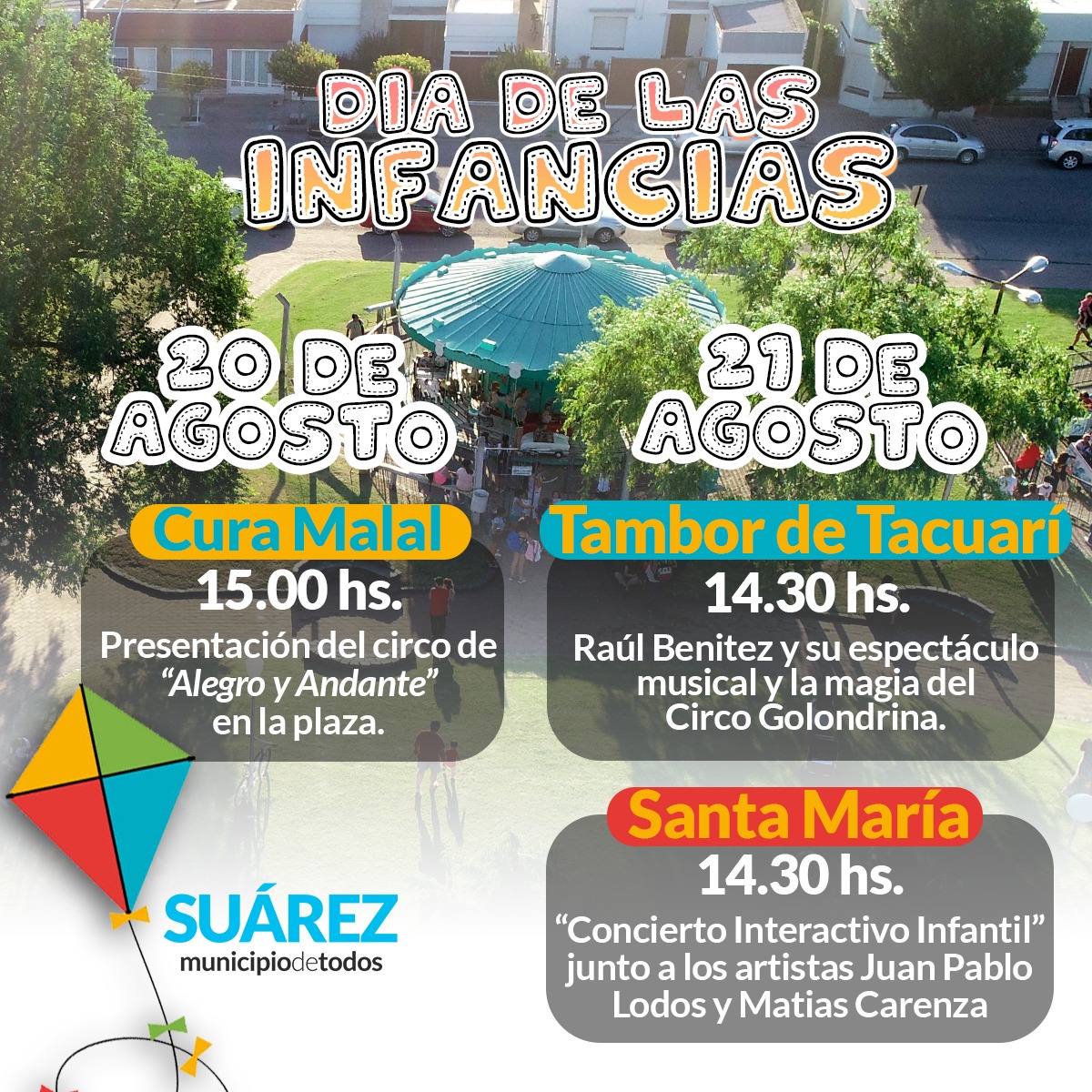 Además, en Pueblo Santa María el domingo a partir de las 15, festejamos con un “Concierto Interactivo Infantil” junto a los artistas Juan Pablo Lodos y Matias Carenza que los harán bailar y moverse con sus propuestas. Organiza el Municipio de Coronel Suárez junto a instituciones de Santa María y el Centro Cultural.