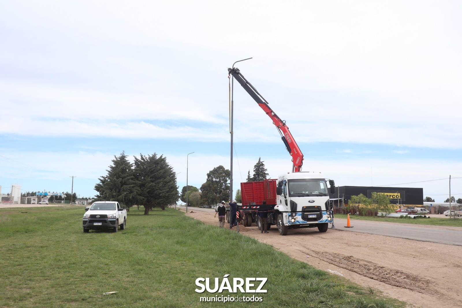 Tal cual lo anunciado por el Intendente Ricardo Moccero, se colocarán un total de 20 columnas de luminarias LED, desde la rotonda de ingreso a la ciudad hasta la rotonda de la Ruta 67.