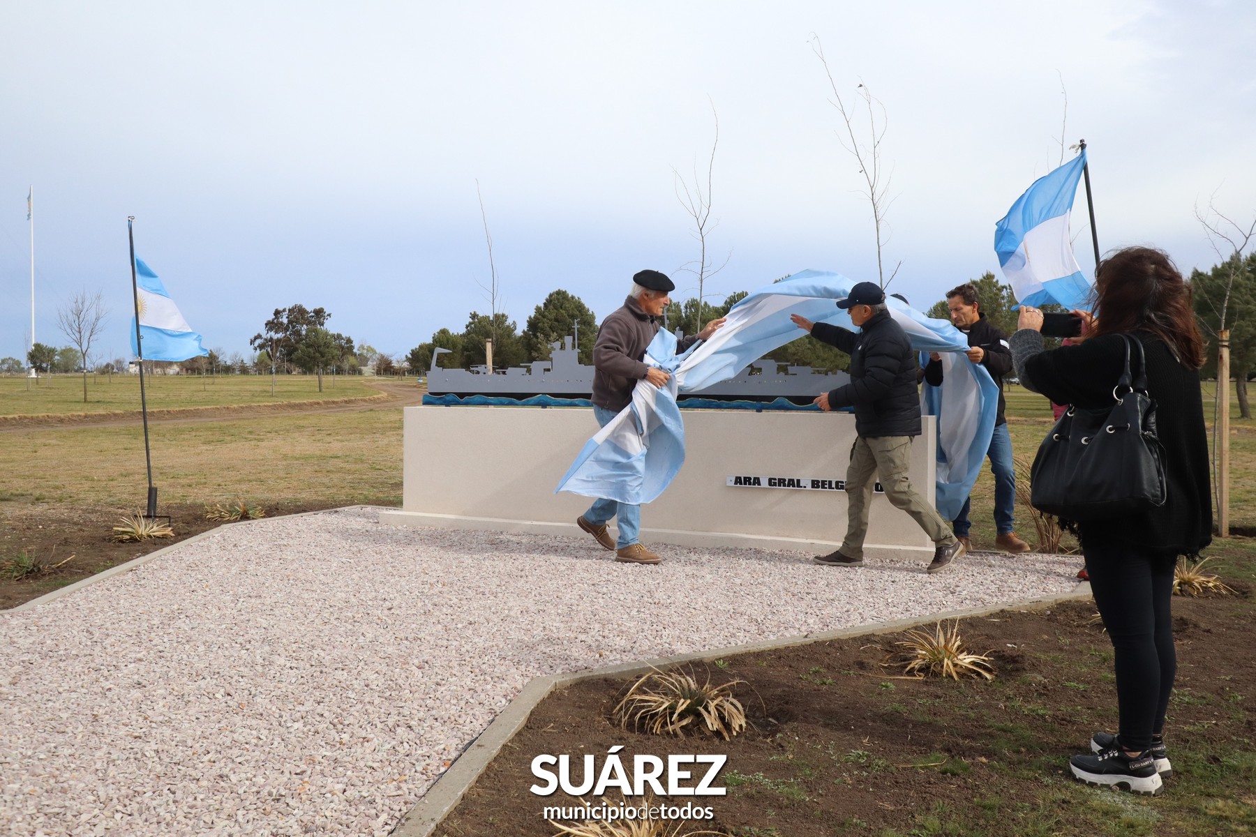“Para nosotros este parque es todo un orgullo, un lugar maravilloso donde se refleja el trabajo incansable de muchas personas” expresó el Intendente de Coronel Suárez Ricardo Moccero durante la tarde del sábado en el Parque Héroes de Malvinas donde se llevó a cabo el descubrimiento de una silueta del Crucero ARA General Belgrano, en recuerdo de las víctimas del hundimiento en el marco de la Gesta del Atlántico Sur. Además, el Jefe Comunal dejó inaugurada la obra de baños en el parque “Héroes de Malvinas”, gestionada ante el Gobernador Axel Kicillof.