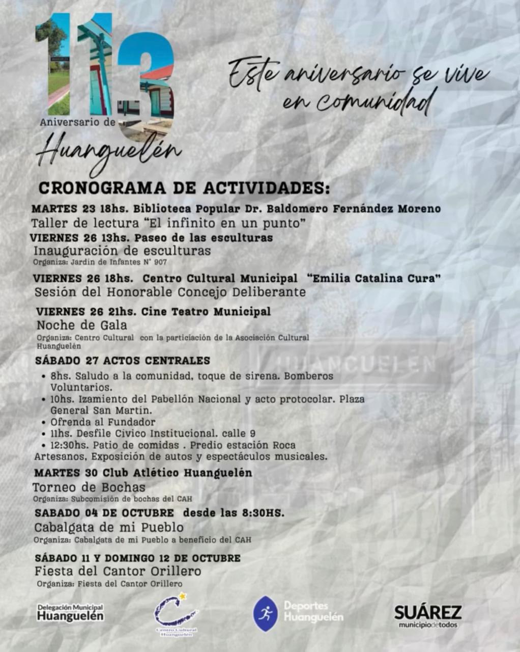 El Intendente Interino Mauro Moccero junto al delegado de la localidad Diego García invitan a toda la comunidad a ser parte de los actos y festejos que se desarrollarán en el marco del 113° aniversario de Huanguelén.
