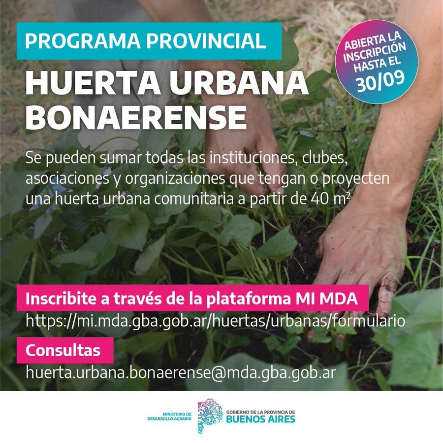 Consultas: huerta.urbana.bonaerense@mda.gba.gob.ar