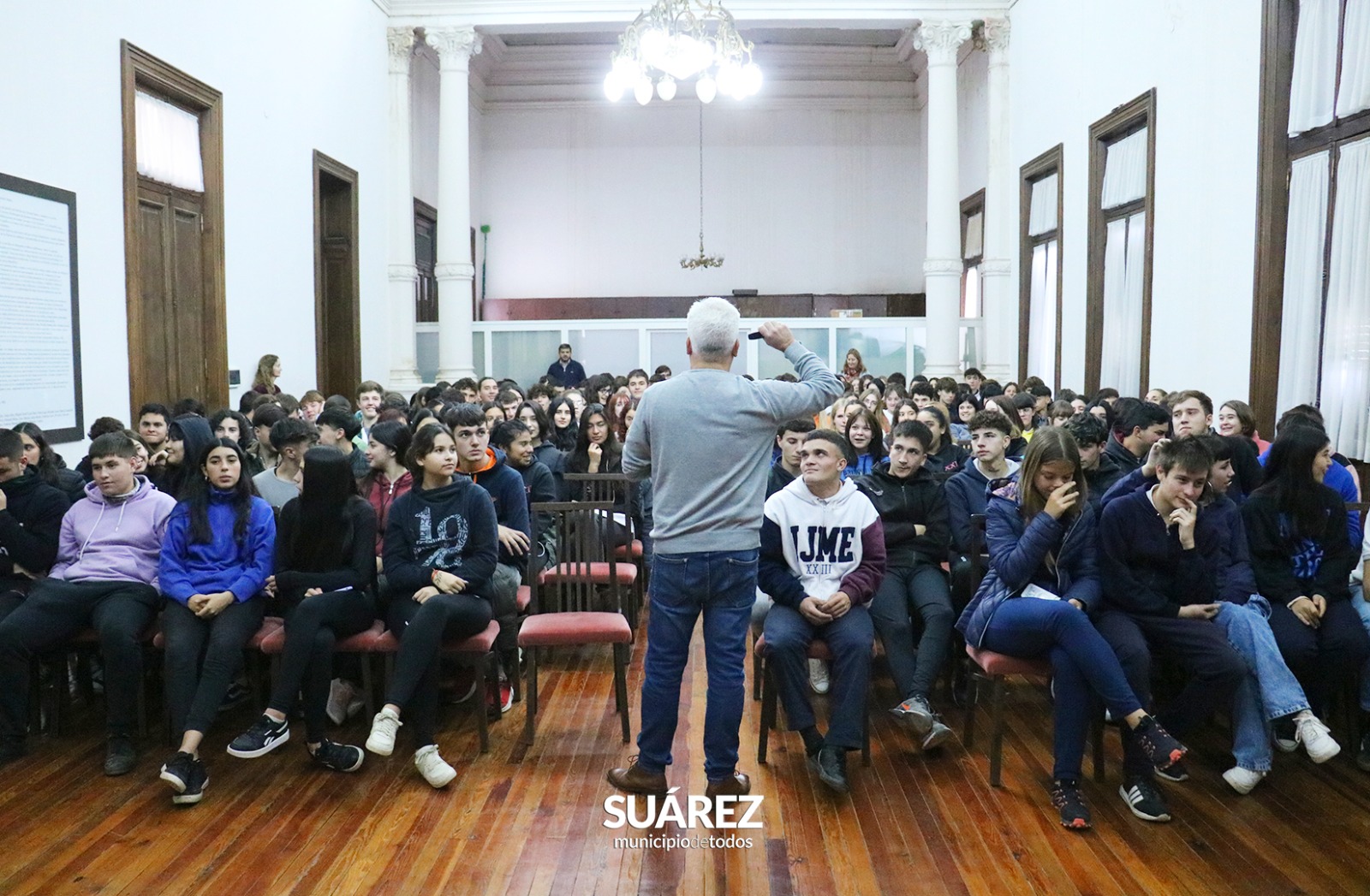 “Como Estado debemos brindarles todas las herramientas para que ustedes puedan estudiar porque es su derecho. Por eso estas charlas de educación vial, buscan que ustedes sean vectores del tema en la sociedad y piensen el tránsito como una cuestión colectiva y no individual” afirmó el Jefe de Gabinete Mauro Moccero en la Unidad Académica “Doctor Julio César Lovecchio” en el marco de las jornadas que brindó el licenciado Sergio Levin –especialista en educación vial– a alumnos de 5to. y 6to. año de las escuelas Agropecuaria, Unidad Académica, Fasta San José, EES N° 1, EES N° 8 y el Colegio José Manuel Estrada durante jueves y viernes.