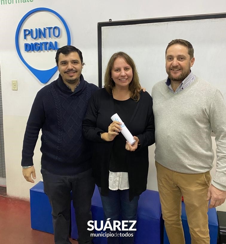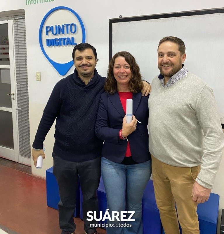 El Jefe de Gabinete Mauro Moccero junto al responsable de los Puntos Digitales del distrito Fernando Streitenberger; hicieron entrega este viernes 16 de junio, a Natalia Martínez, Paula Roige y Mariela Brost -tres trabajadoras de la administración pública municipal- de los certificados que acreditan su Diplomatura en Gestión Pública Municipal realizada a través del Instituto Provincial de la Administración Pública (IPAP).