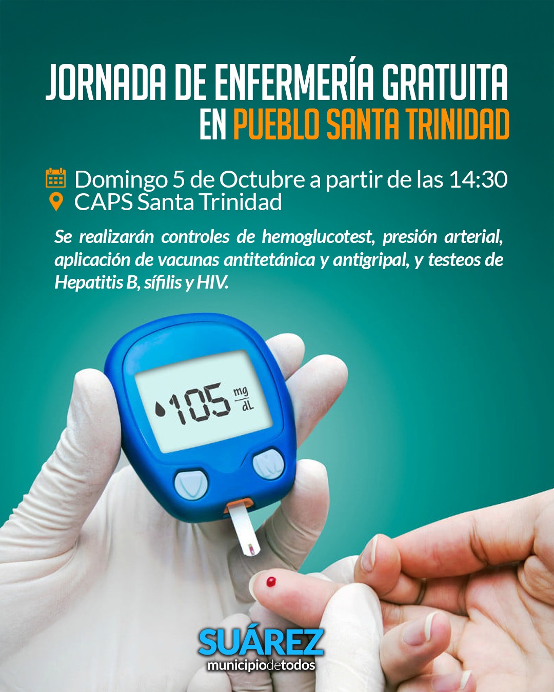 Se realizarán controles de hemoglucotest, presión arterial, aplicación de vacunas antitetánica y antigripal, y testeos de sífilis y HIV.