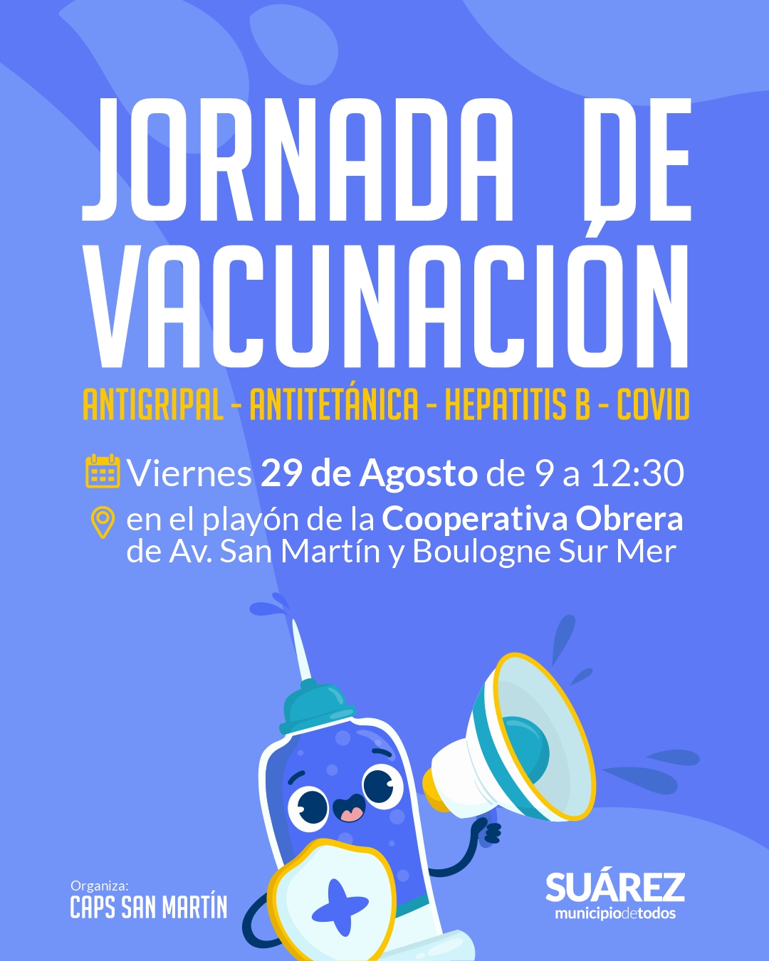El viernes 29 de agosto, de 9 a 12:30, se llevará a cabo una nueva jornada de vacunación en el playón de la Cooperativa Obrera de la Avenida San Martín.