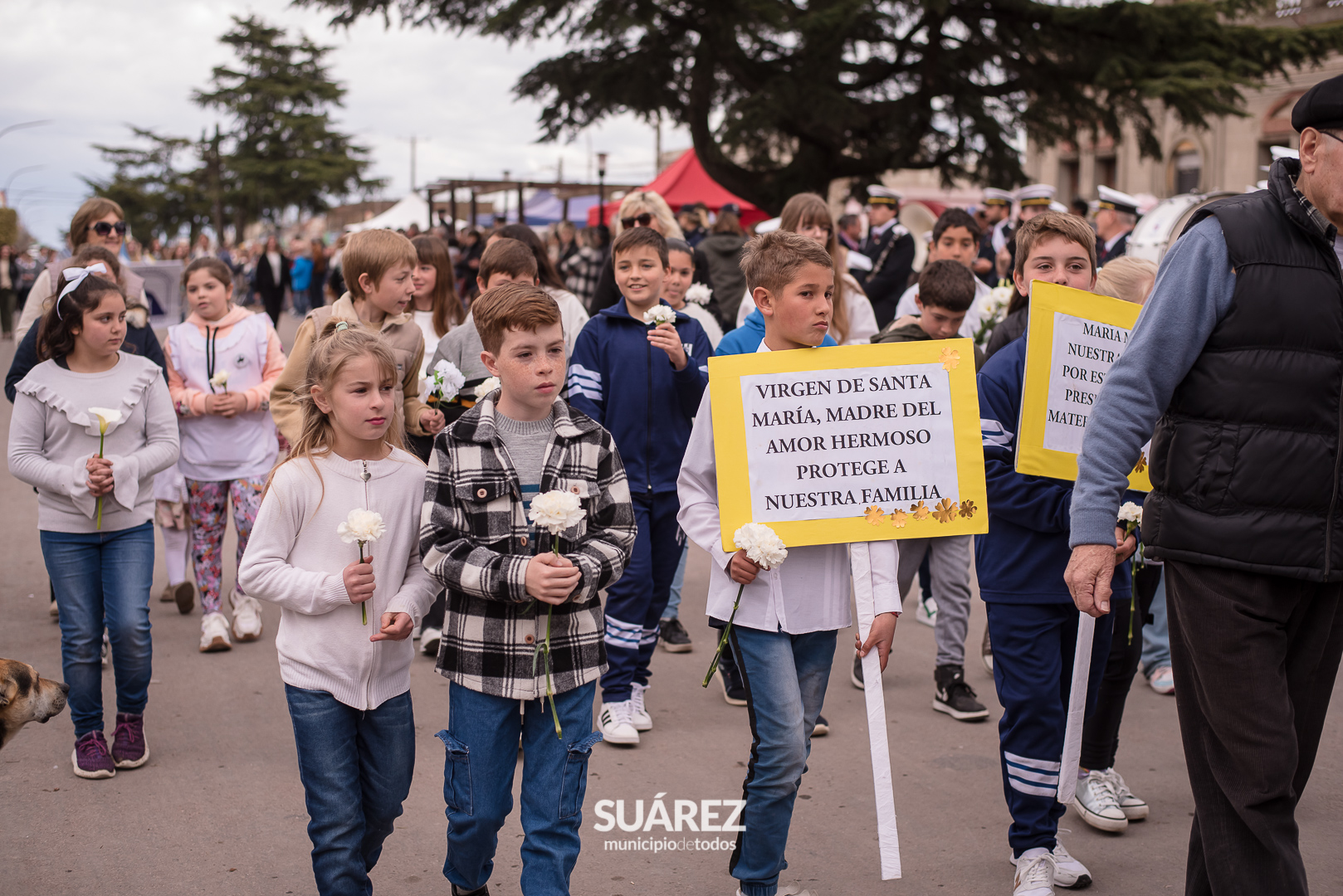 Tras la autorización por parte del Intendente Ricardo Moccero, la imagen de la Virgen María (Patrona de la localidad) abrió el tradicional desfile, dando paso a instituciones educativas, deportivas y de la comunidad que demostró sus ganas de trabajar para el desarrollo y el progreso de Santa María, con un Estado Municipal al servicio del vecino.