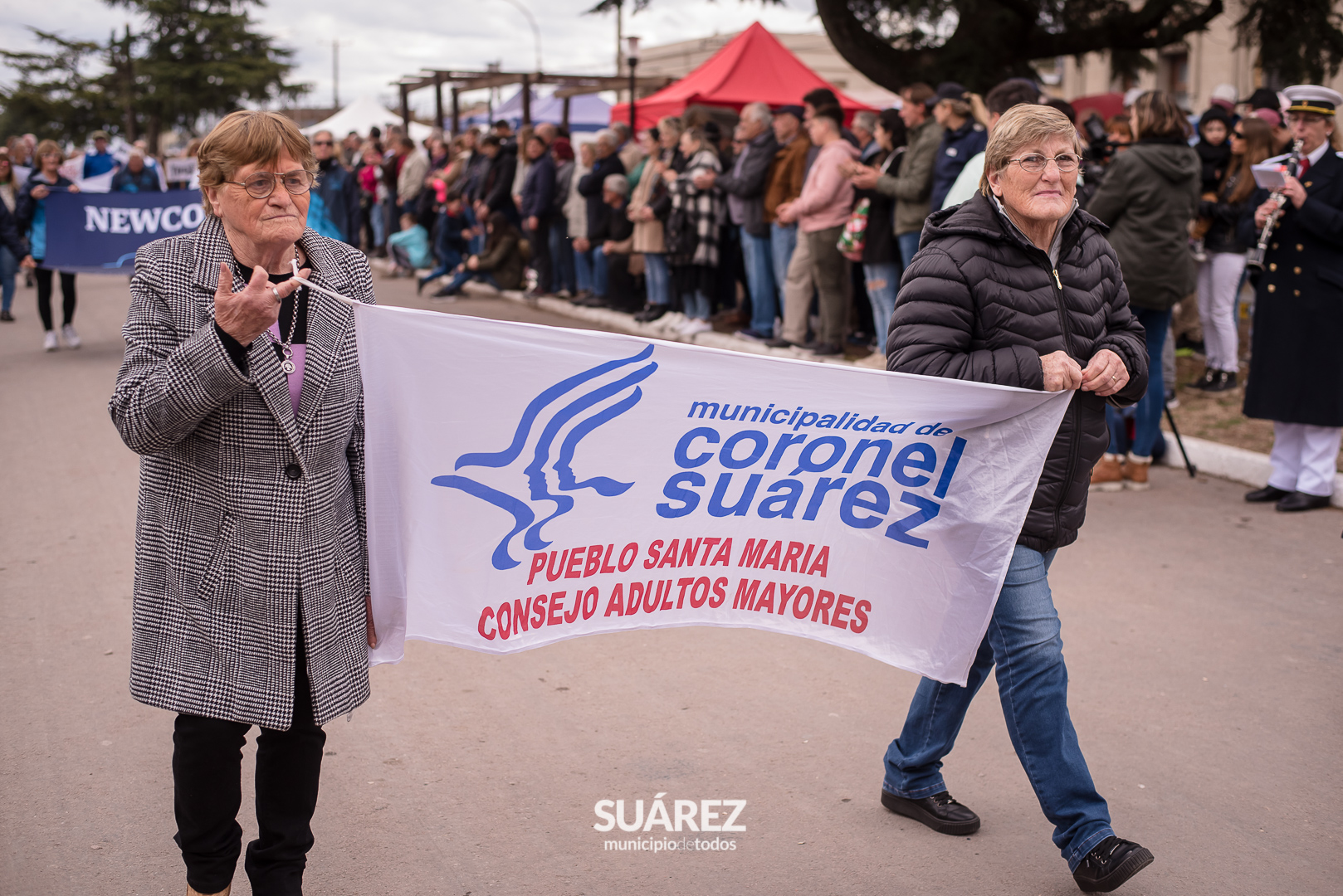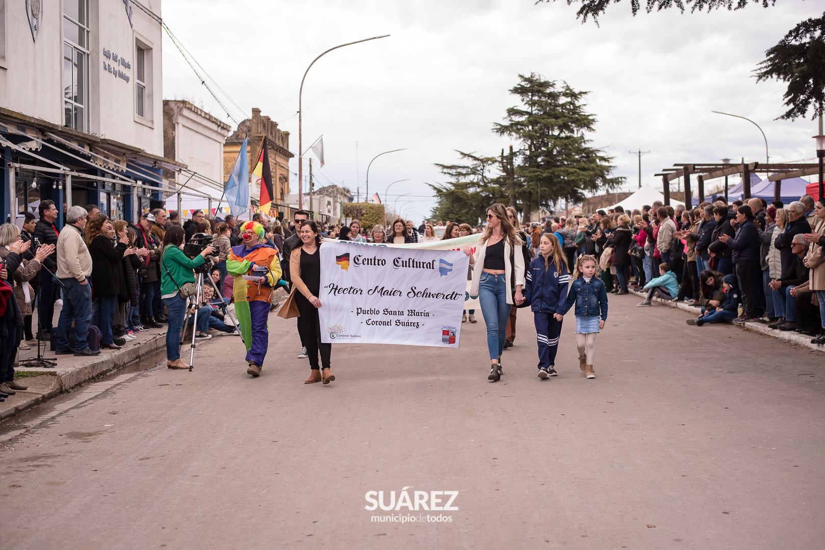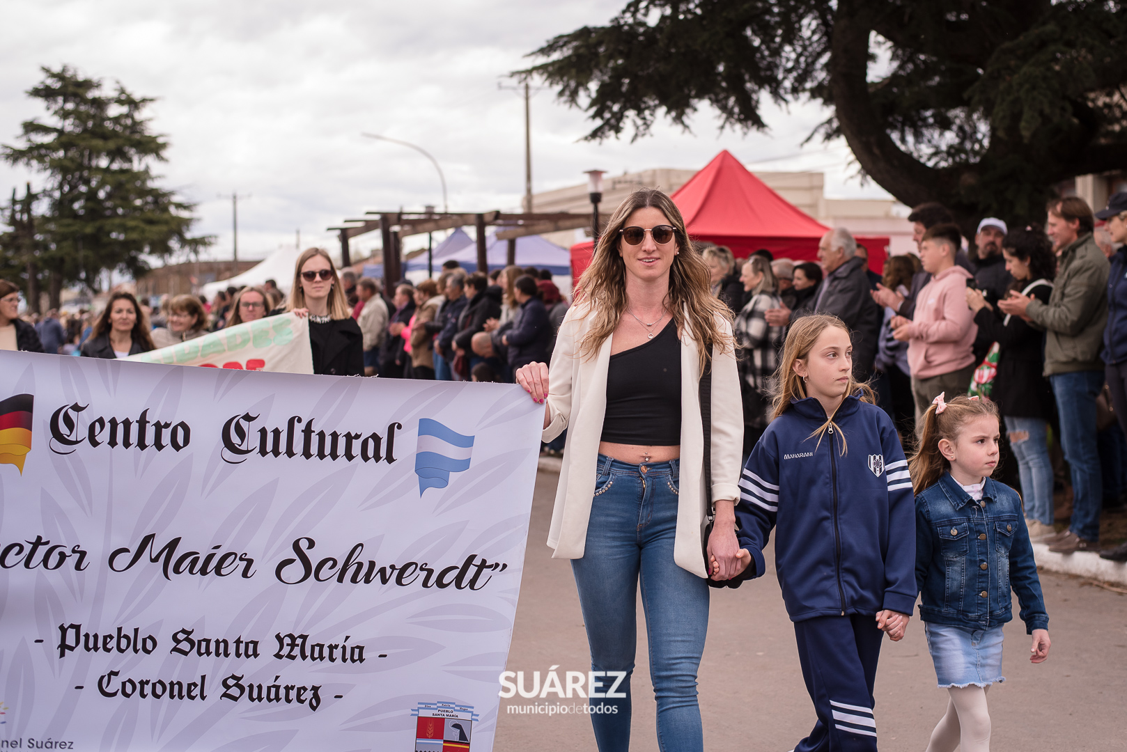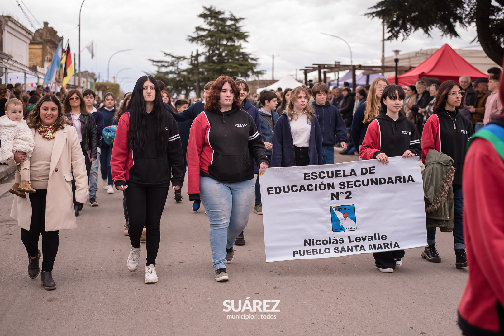 Vecinos y vecinas de Pueblo Santa María, rodearon como ya es tradicional la avenida 11 de Mayo para disfrutar del tradicional y colorido desfile junto a instituciones y organizaciones que conforman su comunidad.