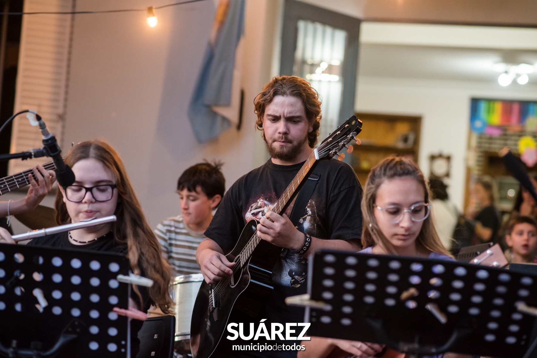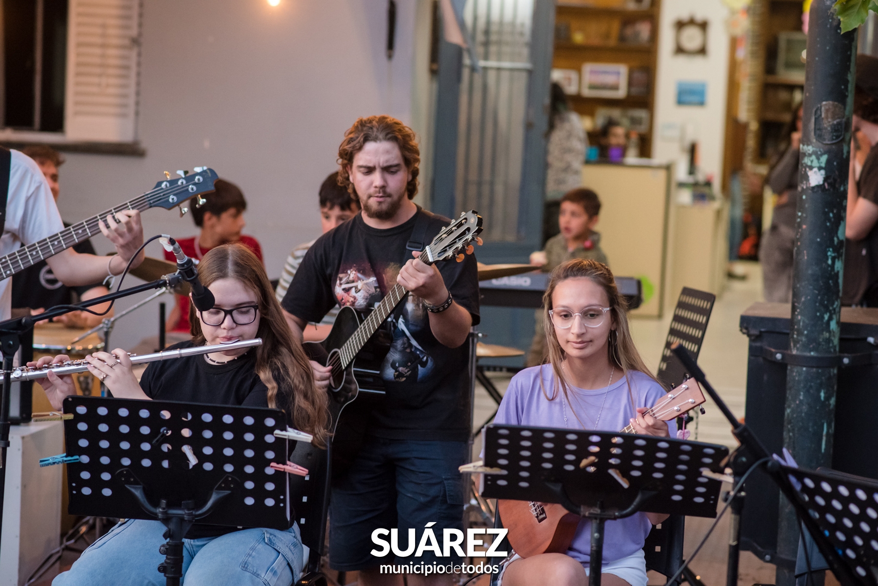 Compartimos imágenes de los festejos por el Día de la Música que se desarrollaron en la noche del miércoles, en la Escuela Municipal de Música, y donde se presentaron los ensambles de música latinoamericana, rock, jazz y charangos.