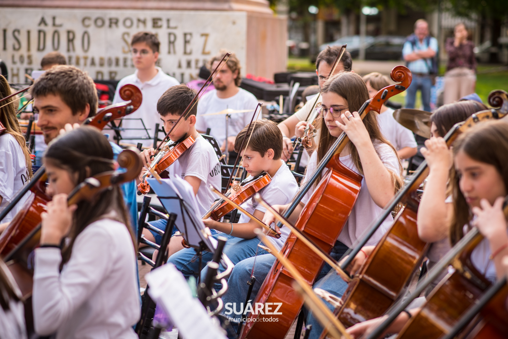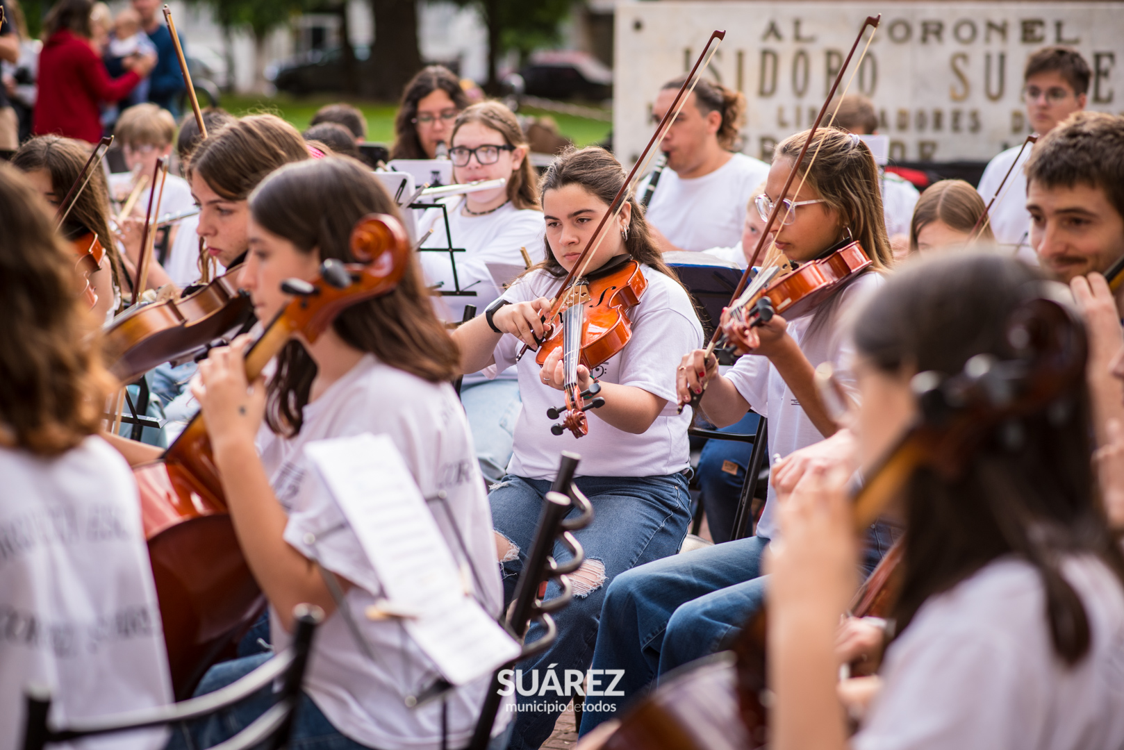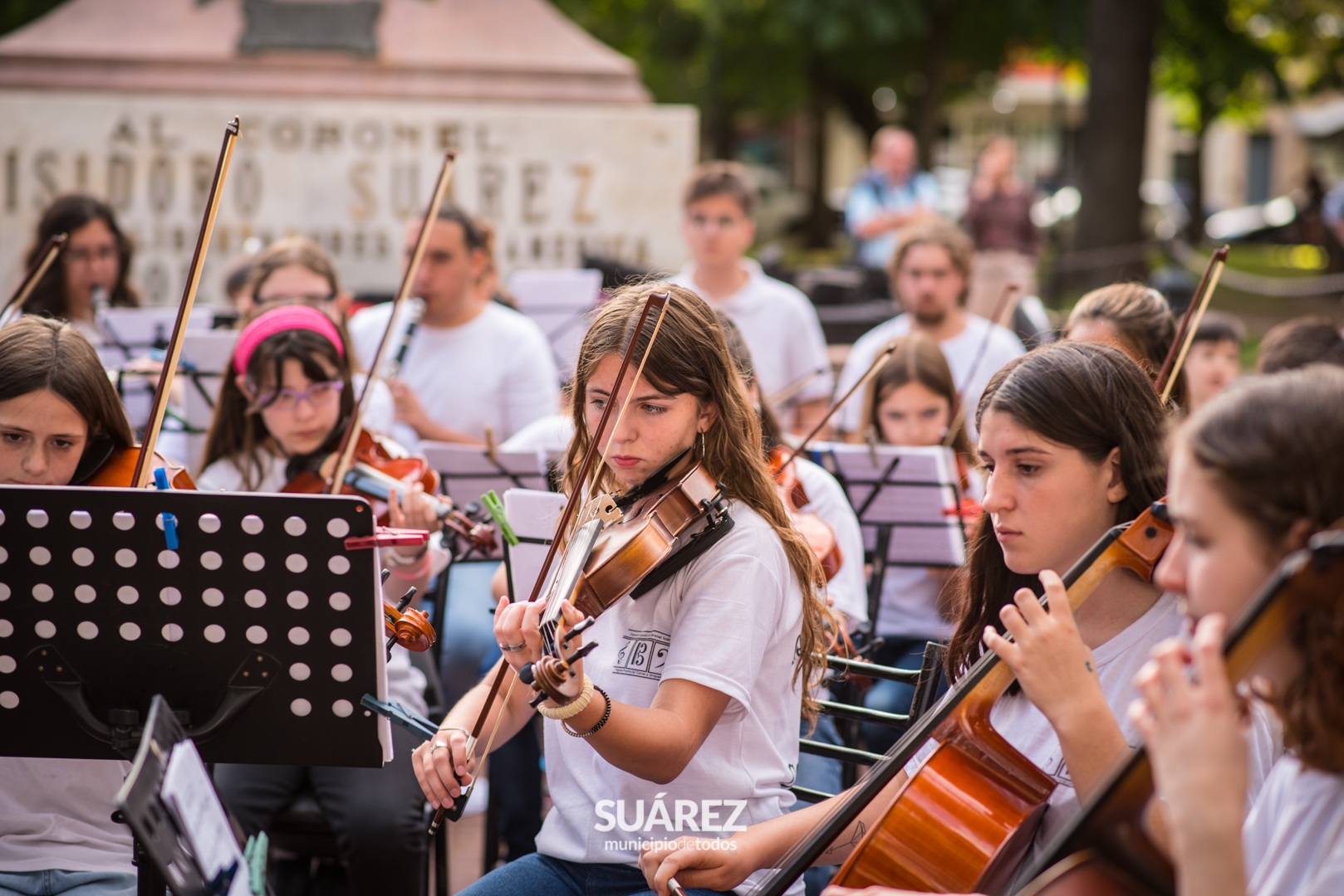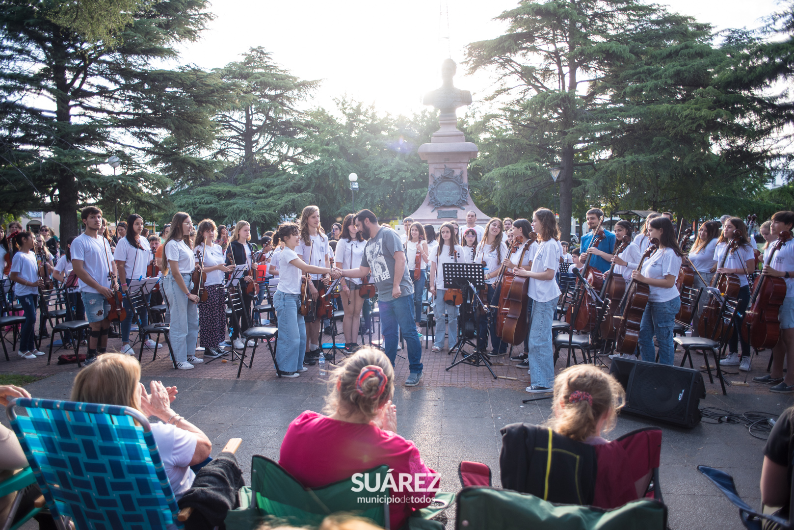 Melodías clásicas y populares de todos los tiempos deleitaron al público que se acercó a disfrutar el lunes por la tarde en la Plaza San Martín, del magnífico cierre de fin de año de la Orquesta Escuela de Coronel Suárez.