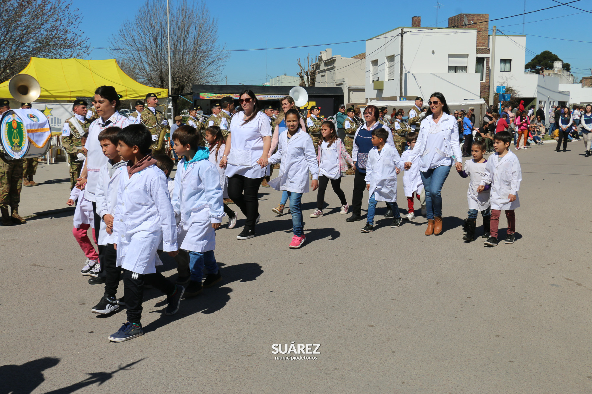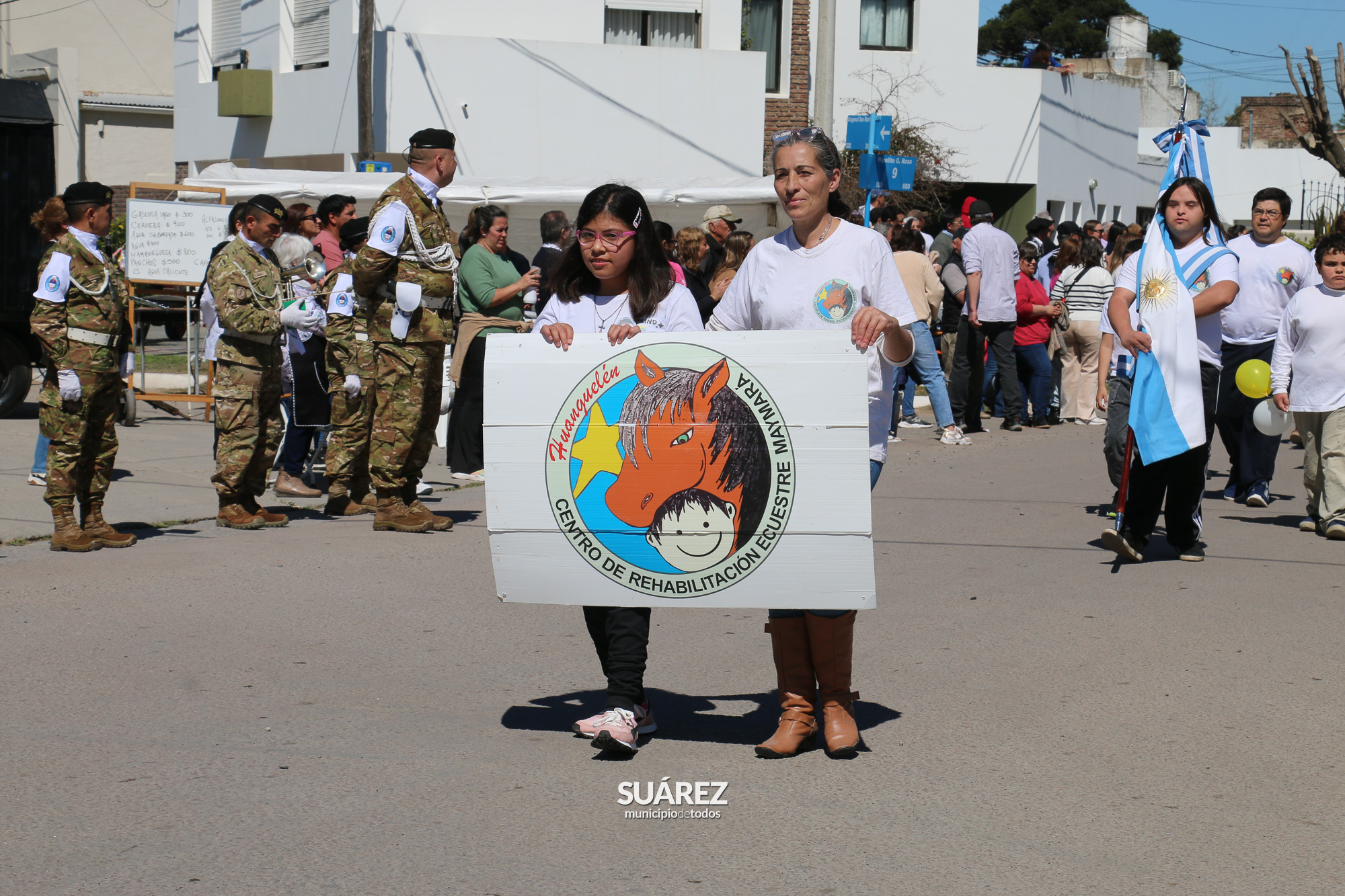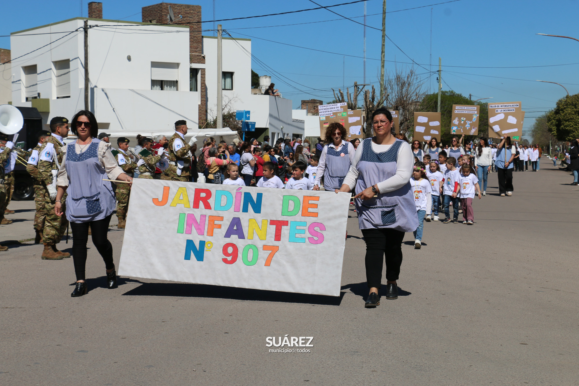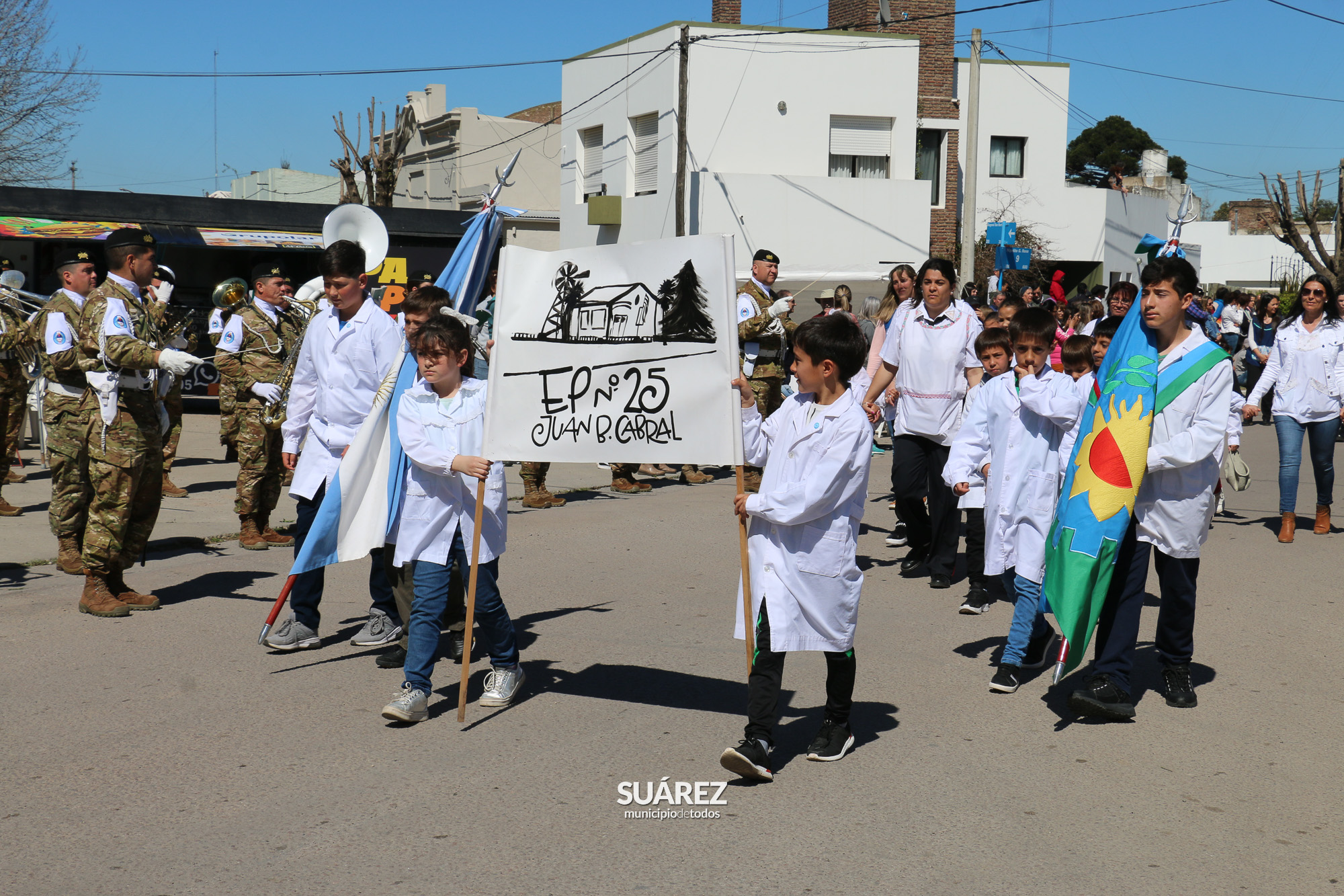 La Banda Militar Cura Malal del Bicentenario Regimiento de Infantería Mecanizado 3 “Manuel Belgrano” desplegó sus fanfarrias ante el paso de las más de 40 instituciones que dijeron presente en los festejos.