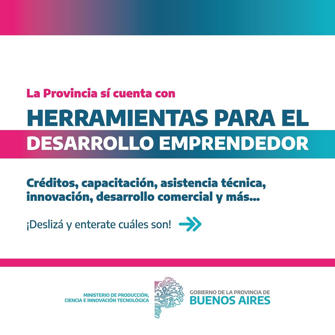 Conocé los créditos #ArribaEmprendedores y #EmprendéTuComercio, las nuevas capacitaciones en gestión productiva, el programa #ProducciónBonaerense, los microcréditos de #ImpulsoProductivo, el programa #ClínicaTecnológica, y las garantías de #Fogaba.