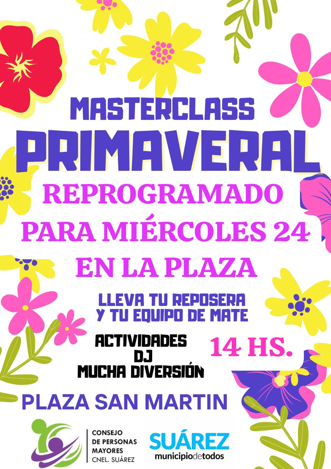 El Consejo de Personas Mayores invita a participar de la Masterclass Primaveral, una jornada especial que se realizará el miércoles 24 de septiembre a las 14:00 en la Plaza San Martín.