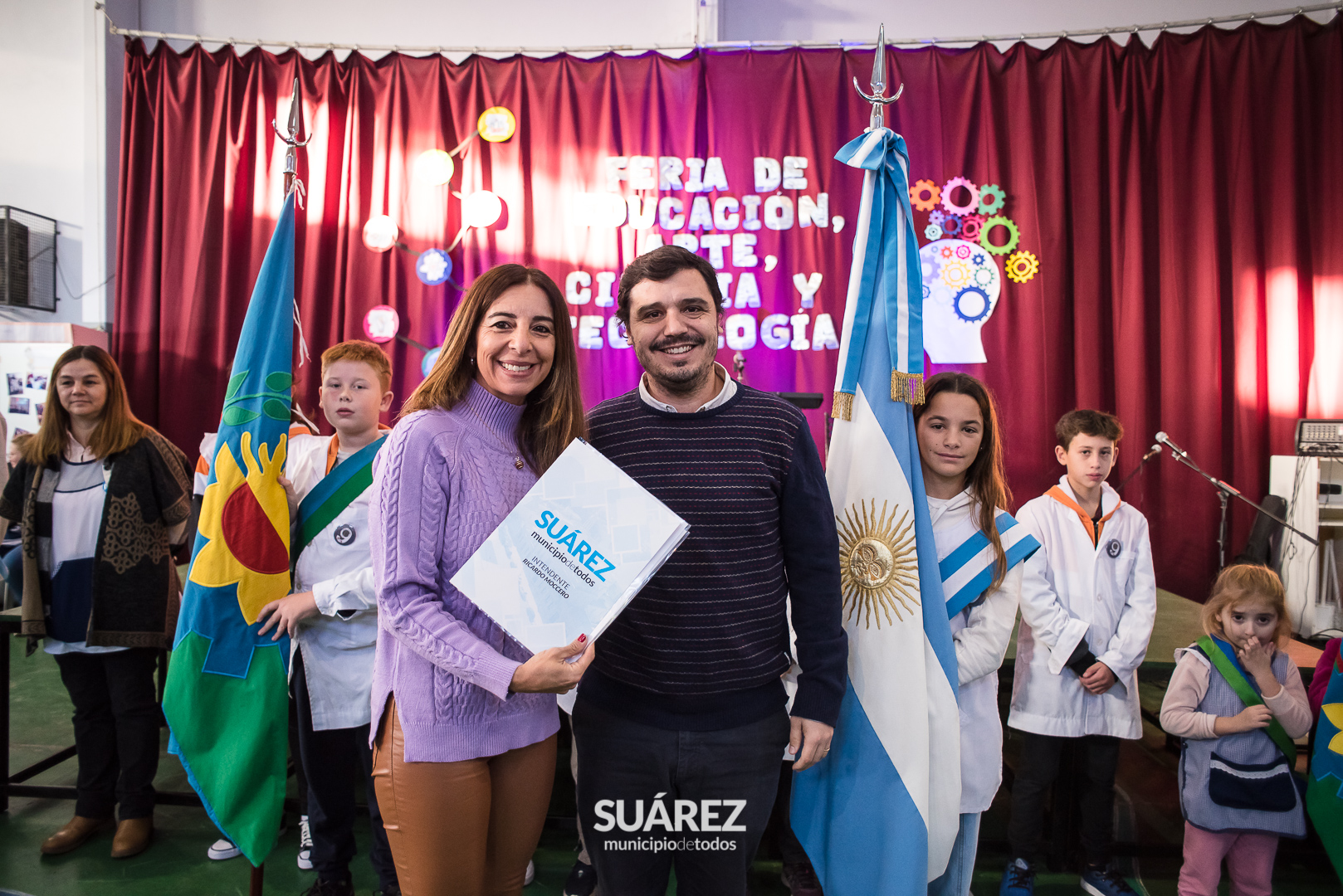 El Jefe de Gabinete Mauro Moccero junto a la subdirectora de Ambiente Magdalena Graff, la Jefa Distrital de Educación Andrea Acosta y el director de Educación Maximiliano Margiotta participaron de la inauguración de la Feria Distrital de Educación, Arte, Ciencia y Tecnología que se desarrolló en la Escuela Primaria N° 9 de la ciudad cabecera.