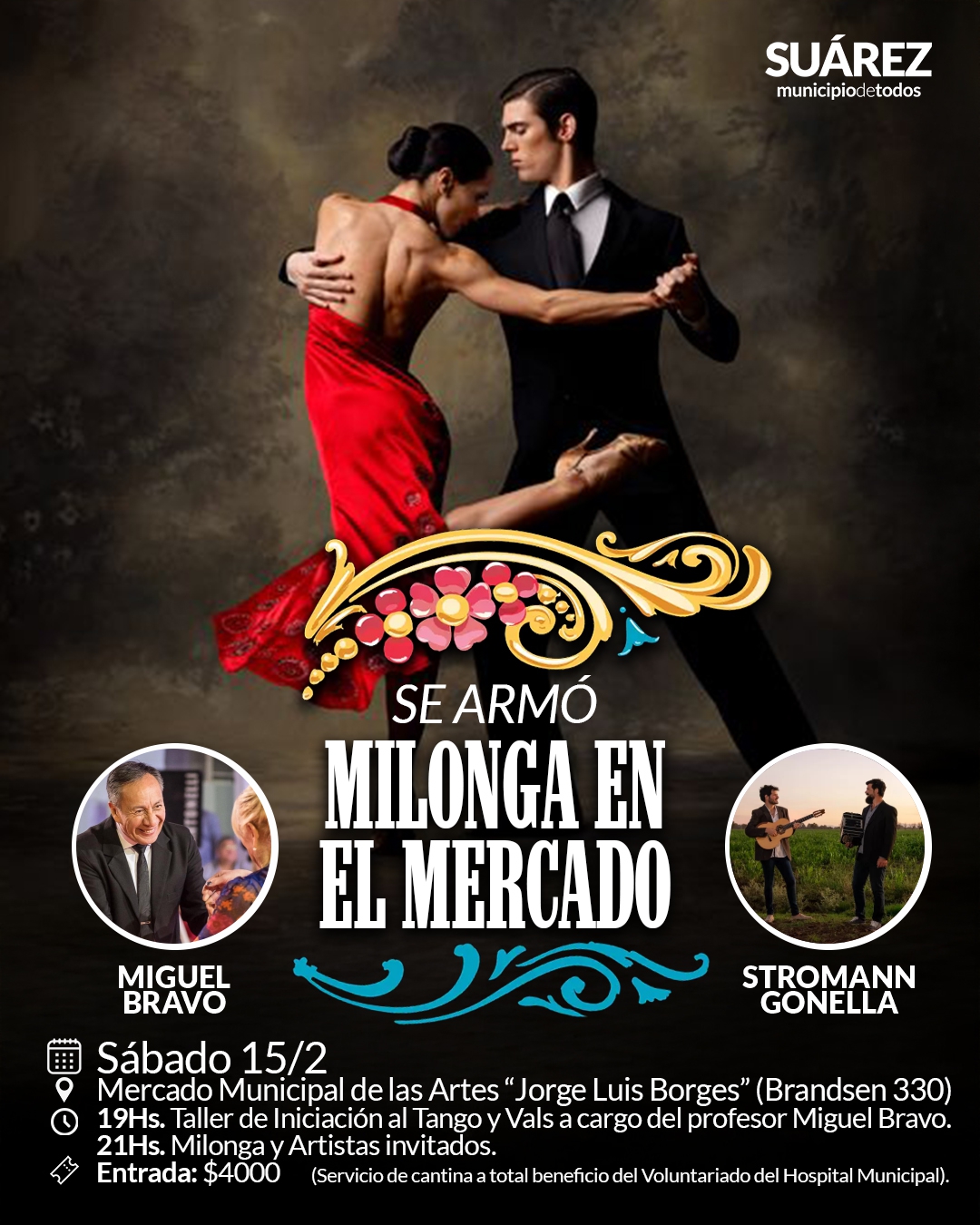 El próximo sábado 15 de febrero, el Mercado de las Artes “Jorge Luis Borges” (Brandsen 330) será el escenario de una velada única para los amantes del tango y la milonga. Un evento que fusionará música y baile, ofreciendo una propuesta cultural imperdible para toda la comunidad.