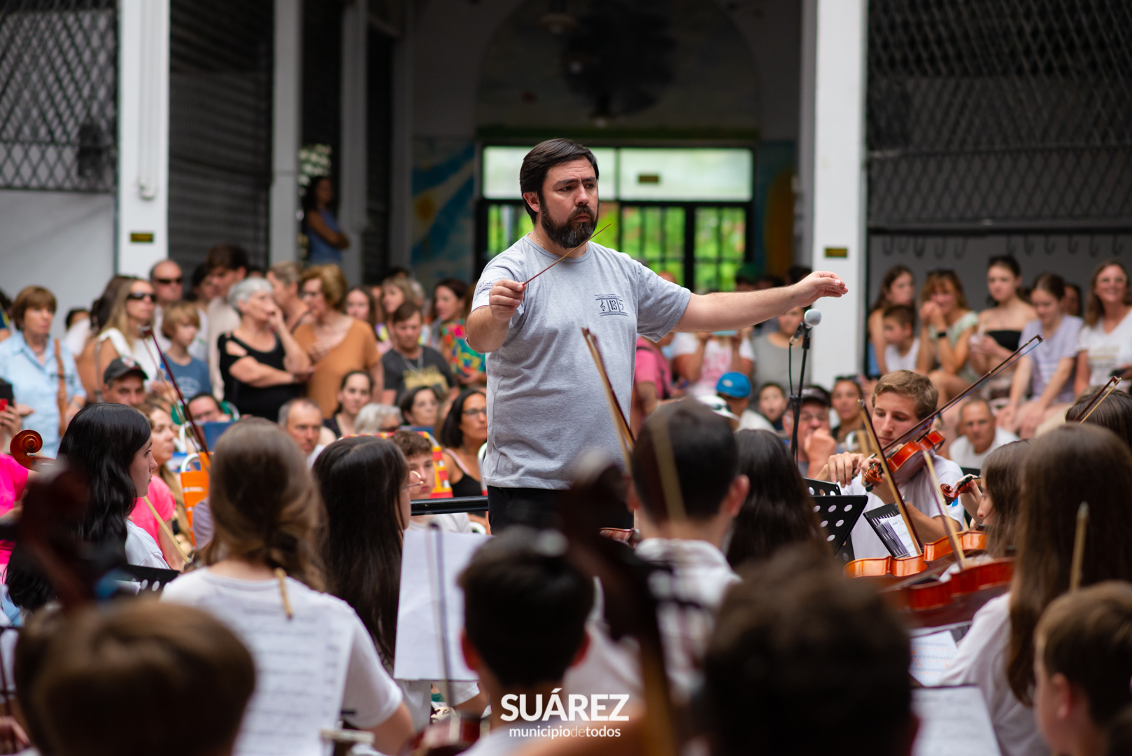 La Orquesta Escuela de Coronel Suárez celebró ayer su tradicional Concierto de Fin de Año en un colmado Mercado Municipal de las Artes, donde un entusiasta público acompañó cada momento de la presentación.