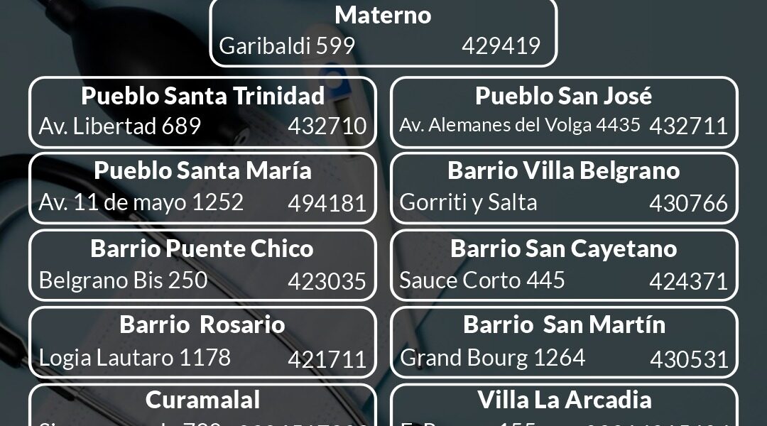 Desde el Centro de Atención Primaria para la Salud se recuerda a la comunidad las direcciones y teléfonos de los CAPS para realizar las consultas de las diversas especialidades médicas.