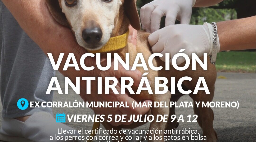 El equipo de profesionales atenderá en el Ex Corralón Municipal -Ma r del Plata y Moreno- el viernes 5 de julio, de 9 a 12:00. Se recuerda a la población llevar el certificado de vacunación antirrábica, a los perros con correa y collar y a los gatos en bolsa de cebolla adentro de una caja. Se suspende por lluvia.