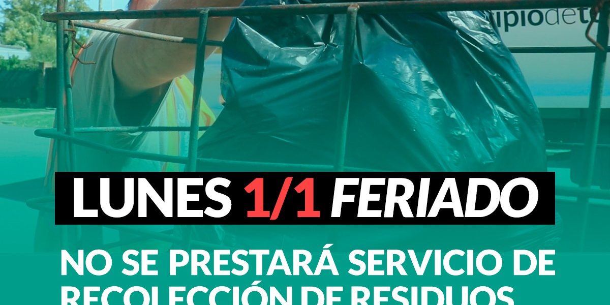 La secretaría de Servicios Públicos informa a la población que el día LUNES 1 DE ENERO NO SE PRESTARÁ el servicio de R0ecolección de Residuos.