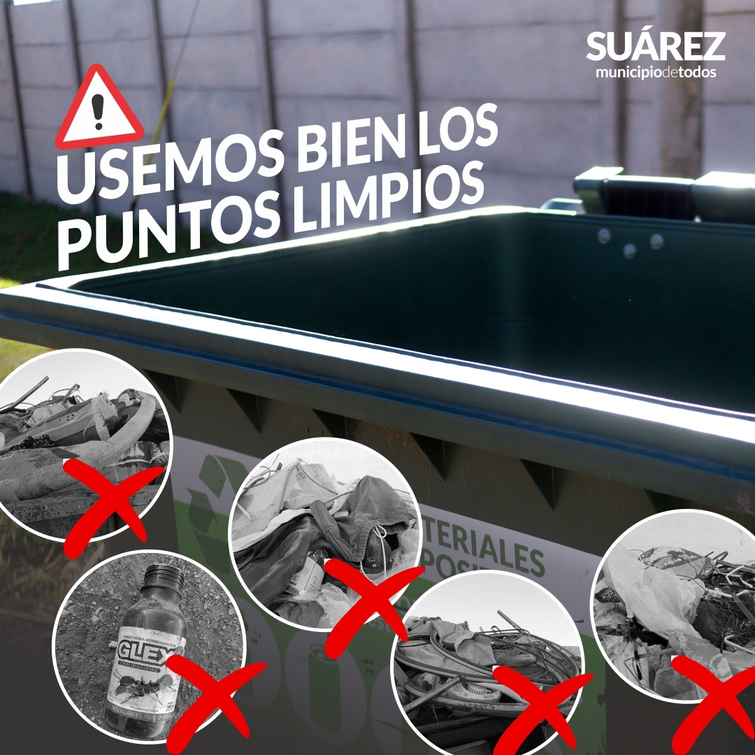 La dirección de Ambiente y Desarrollo Sustentable recuerda a la población que en los Puntos Limpios se debe depositar exclusivamente residuos secos, a saber: papel, cartón, vidrio, botellas de plástico, latas y tetra brick.