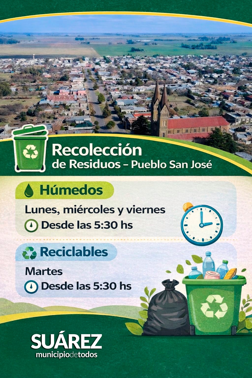 La Delegación de Pueblo San José recuerda a los vecinos los días y horarios de recolección: