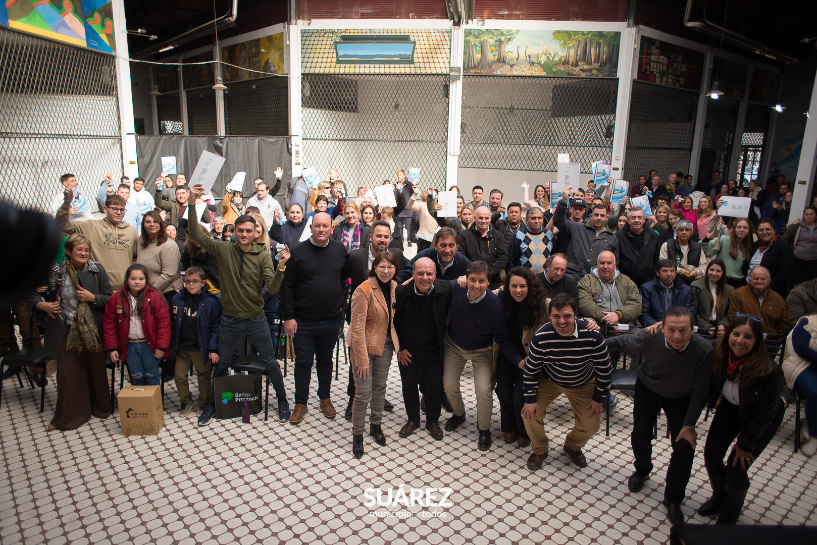El acto se desarrolló este lunes en el Mercado Municipal de las Artes “Jorge Luis Borges”, donde las familias beneficiarias recibieron las llaves de su casa propia de manos del intendente Moccero y la ministra provincial.