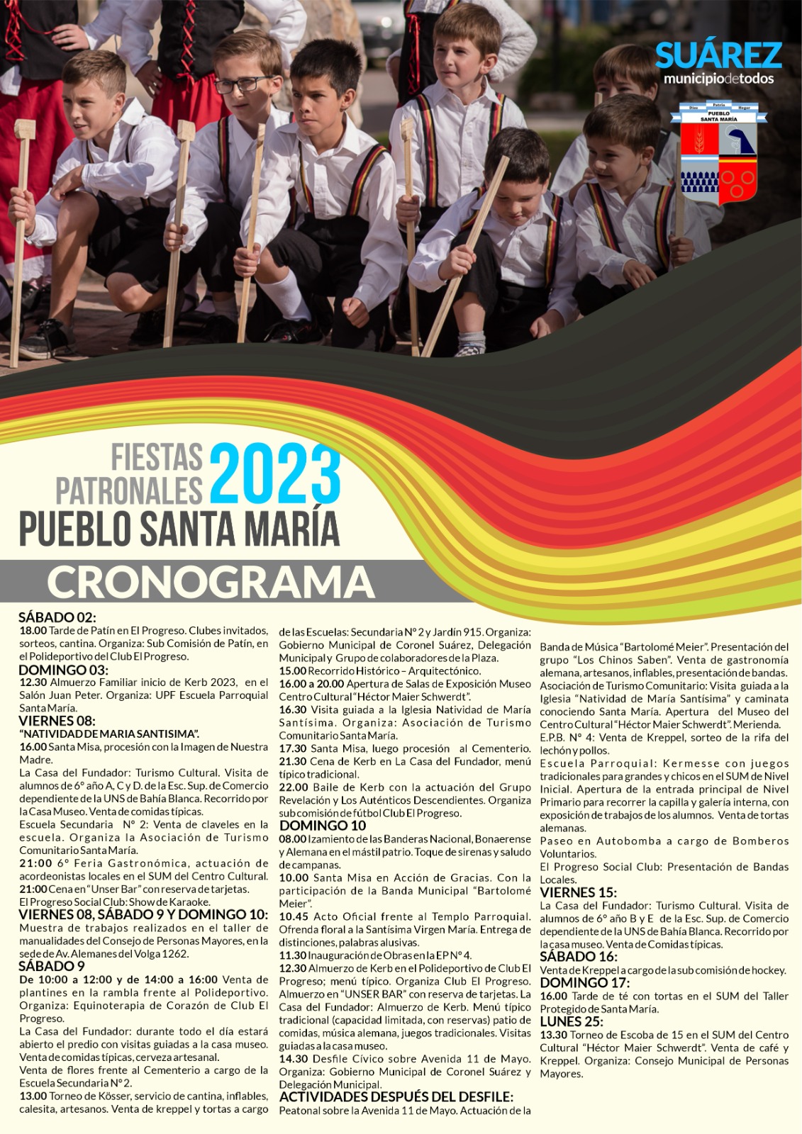 El Intendente Ricardo Moccero y el delegado de Pueblo Santa María Juan Pablo Eberle invitan a toda la comunidad a participar de los actos y festejos programados por una nueva Fiesta Patronal de la tercer colonia alemana.