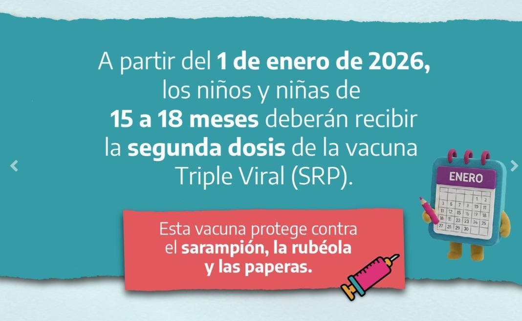 A partir del 1° de enero de 2026, la vacuna Triple Viral (SRP) —que protege contra el sarampión, la rubéola y las paperas— tiene una modificación en su esquema.