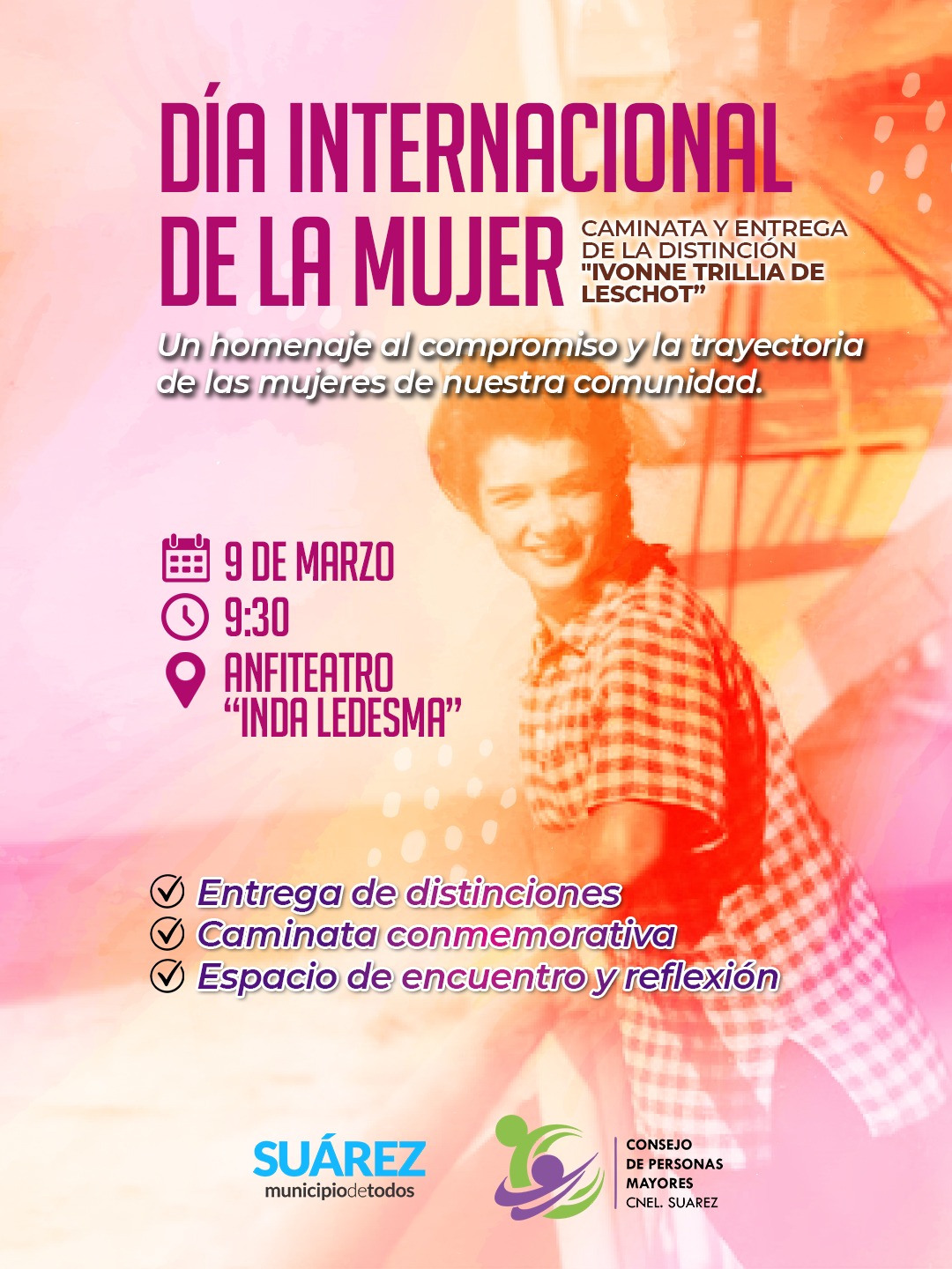 En el marco de la Caminata en conmemoración del Día Internacional de la Mujer, organizada por el Consejo de Personas Mayores, se realizará la entrega de la Distinción Anual “Ivonne Trillia de Leschot”, un reconocimiento que destaca el compromiso y la trayectoria de mujeres de nuestra comunidad.